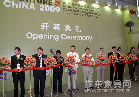 本次展会的开幕可谓是国内外业界人士云集,不仅有全国人大第十届常委、中国轻工业联合会名誉会长、中国家具协会名誉会长陈士能先生,中国家具协会理事长贾清文先生等来自各政府有关部门和行业协会的领导们,而且还邀请到了意大利驻沪总领事和其他各国驻沪总领事馆的官员们。本次展览开幕式,主办方独具匠心,随着舞台前方的两个时钟数字显示在2009年9月9日9时9分时,嘉宾们共同为第十五届中国国际家具展览会剪彩,寓意着“长长久久”,业内人士共同期待中国家具行业稳步持续发展,不断壮大。