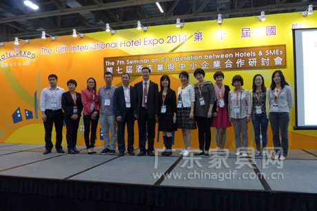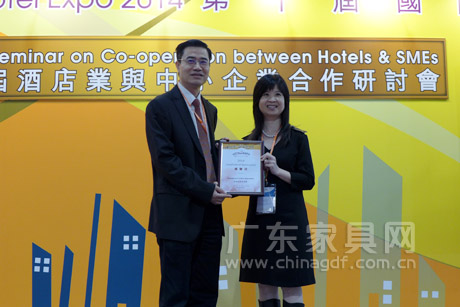 2014年11月26日至28日,第十届国际酒店展在澳门威尼斯人金光会展中心举行。广东省家具协会组织了广东省内优秀酒店家具企业参加了本届展会,与来自亚洲各国的酒店总经理及高管人士交流。参加本届展会的酒店家具企业有:广东中泰家具实业有限公司、佛山市源田床具机械有限公司、中山市齐家家具有限公司、惠州市海洋居品家具有限公司、中山市红古轩家具有限公司。同时,第六届澳门国际荷花杯酒店家具设计大赛的获奖作品图片也在展会上展出。 26日举行的酒店业与中小企业合作研讨会暨商业配对活动,更为本次展览会增彩不少。活动首先由广东省家具协会王克会长致开幕词,顺德职业技术学院孙亮教授进行了《观“米兰”展看设计潮》的主题演讲,广东白云学院丁斌副教授公布了第六届澳门国际荷花杯酒店家具设计大赛结果,并对获奖作品进行了点评。2014年度金牌酒店家具供应商的颁奖仪式也在研讨会上举行。 为感谢广东省家具协会多年来对酒店展的支持和为酒店家具企业发展所做的贡献,主办方还特意为协会颁发了感谢状。