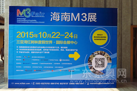 10月22日,海南唯一专业酒店、酒店用品展——第四届海南M3展在海南三亚红树林国际会展中心盛大开幕。海南M3展由海南省商务厅引进,广东省家具协会、海口世展米兰展览有限公司联合主办的主题专业展览会。 M3为Three Majors的缩写,意指与酒店行业相关的三大主题:酒店家具及酒店用品、酒店设计、酒店建筑装饰材料。自2012年举办第一届以来, M3展一直是海南省规模最大、规格最高、影响力最大的酒店和酒店用品类展会。