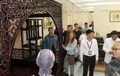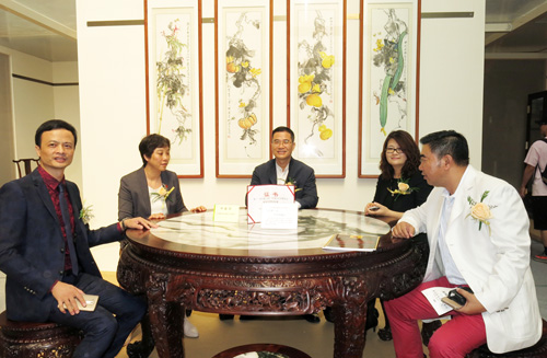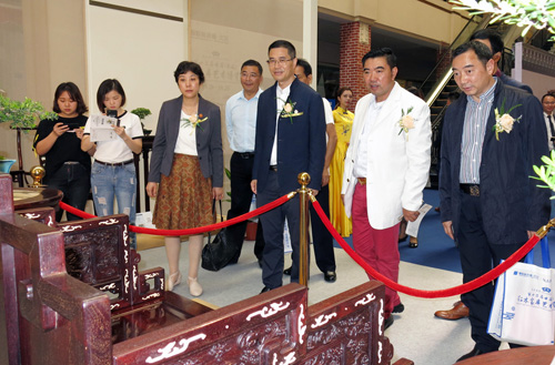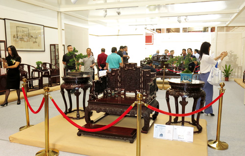 广东省经济和信息化委员会消费品工业处处长万淑萍,乐从镇委书记张新杰、镇长崔伟国,台山市大江镇经济促进局副局长伍礼贵,广东省家具协会会长王克、副会长兼秘书长张承志、副会长李礼,广东省收藏家协会副主席黄大钊,顺联集团董事长陈锐成、总裁陈淑瑶,顺联家具城北区总经理胡柯,广州市家具行业协会秘书长陈允,深圳市红木文化艺术协会副秘书长张庆林,中山市红木行业协会秘书长黄岸池,新会传统古典家具行业协会秘书长余智彬,广州市番禺区石碁古典红木家具行业协会副会长陈成基等出席开幕式。 红木珍品的亮相是本届展会上万众瞩目的焦点所在。本届展会的主题是藏古品今,传承中式新风尚,因此展会上传统红木家具及新中式家具名作齐集,百花齐放,既有古典厚重的气息,又有新颖别致的现代精品。