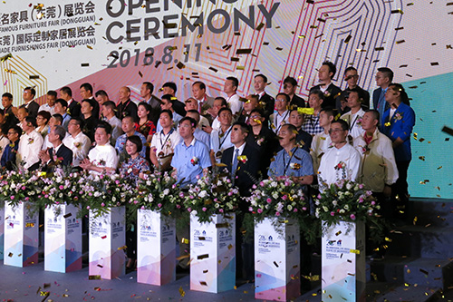 名家具展迎来20华诞。8月11日,第40届名家具展暨第2届中国(东莞)国际定制家居展在东莞厚街揭幕。工业和信息化部消费品司司长高延敏、中国家具协会理事长徐祥楠、东莞市副市长万卓培、广东省商务厅原副厅长吴军,东莞市厚街镇委书记詹文光、镇长叶可阳,广东省家具协会会长王克,香港家私协会主席张呈峰,东莞名家具俱乐部理事长林炳辉等出席开幕式。