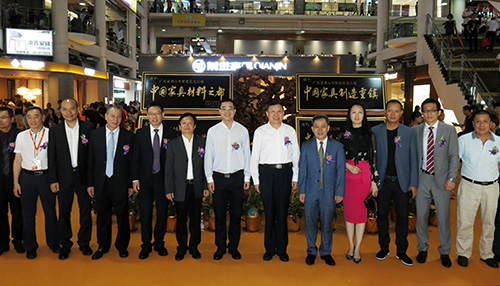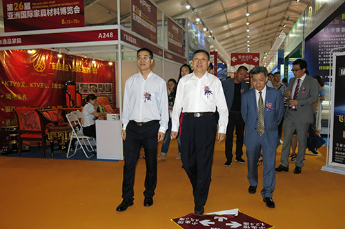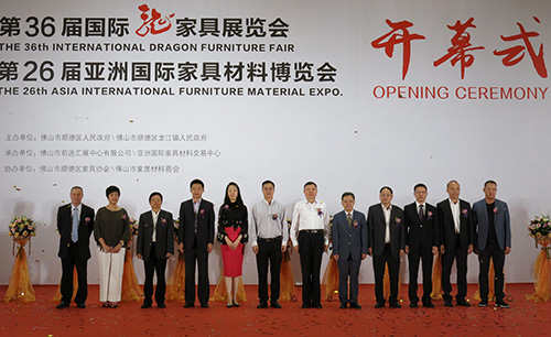 中国家具协会理事长徐祥楠,广东省家具协会会长王克,佛山市发展和改革局副局长朱小建,佛山市商务局副局长黄铁,顺德区政府办公室副主任劳广行,龙江镇党委书记梁伟沛,龙江镇镇长何春云,中国家具协会副秘书长屠祺,广东省家具协会副会长兼秘书长张承志、副会长李礼,顺德区家具协会会长、亚洲国际家具材料交易中心董事长梅荣能,佛山市前进汇展中心有限公司董事长谭广照等领导和嘉宾出席了展会开幕式。