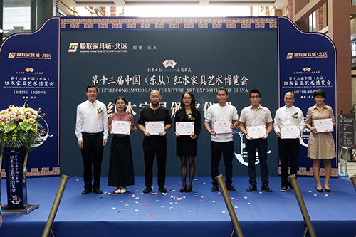 展会开幕式上,还举行了红木家具颁奖仪式,对一批优秀的参展企业和参展作品分别颁发最具艺术价值奖、最具收藏价值奖、最佳展厅形象奖、最佳制作工艺奖、最佳产品创新奖、最佳产品设计奖等奖项。