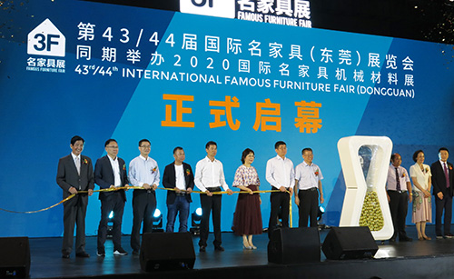 8月18日,为期5天的第43/44届国际名家具(东莞)展览会暨2020国际名家具机械材料展在东莞厚街广东现代展览中心开幕。中国家具协会副理事长兼秘书长张冰冰、广东省家具协会会长王克、华源集团董事长林干能、香港家私协会主席张呈峰、东莞名家具俱乐部理事长林炳辉等领导嘉宾出席启幕仪式。
