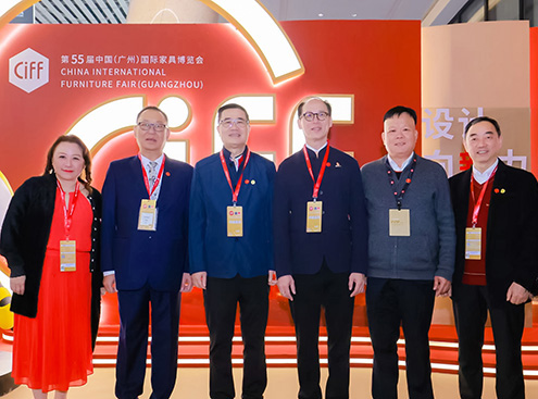 周善青副主任在开幕致辞中表示,2025年是“十四五”规划的收官之年,作为商务部直属事业单位和我国重要贸易促进机构,中国对外贸易中心以习近平主席致广交会的重要贺信精神为指引,在高质量办好广交会的基础上,统筹推进广州家博会、天津家博会等行业领先品牌展的专业化建设,从四个方面努力实现质的有效提升和量的合理增长。一是稳外贸、拓市场;二是扩内需、提消费;三是促创新、强引领;四是数字化、绿色化。 徐祥楠理事长在致辞中表示,第55届中国家博会(广州)服务全国统一大市场建设,连接全球无限商机,引领产业迭代升级,为推动经济高质量发展注入了强大动能。今年的家博会积极响应国家发展战略,聚焦“绿色、智能、适老”等趋势方向,引导企业以优质供给满足消费需求,提升行业现代化水平,推动实现高质量发展。 殷焕明一级巡视员在致辞中表示,去年广东外贸迈上9万亿标志性大台阶、增长9.8%,增幅高于全国,总量连续39年位居全国第一。这个成绩的取得,离不开广东完备的产业链供应链,也离不开众多展会的支撑。广东省的品牌展会日益增多,既有广交会、高交会等多个国家部委与地方政府联合主办的品牌展,也有中国家博会等不同领域的高品质、超大规模专业展。中国家博会(广州)作为全球家居行业规模最大的贸易和消费促进平台,为服务国内国际双循环、推动家具行业高质量发展做出积极贡献。广东省商务厅高度重视会展经济,努力给来广东参展、观展的各地企业和观众营造良好的营商环境,为进一步助力经济高质量发展赋能。寄语参展企业把握机遇,争取拿下更多订单,取得更好成效;参会观众乘兴而来,满载而归。 中国家博会(广州)承办方中国对外贸易广州展览有限公司副总经理邓晶晶介绍了第55届中国家博会(广州)的情况。 开幕式后,作为中国家博会(广州)的主办方之一,广东省家具协会王克会长、张承志执行会长兼秘书长走访了联邦家私、健威家具、迪奥比、达希家居、匠度、名博、宜奥、CBD等参展品牌企业,与企业负责人深入交流,详细了解企业产品创新、市场拓展情况,为企业助威鼓劲。