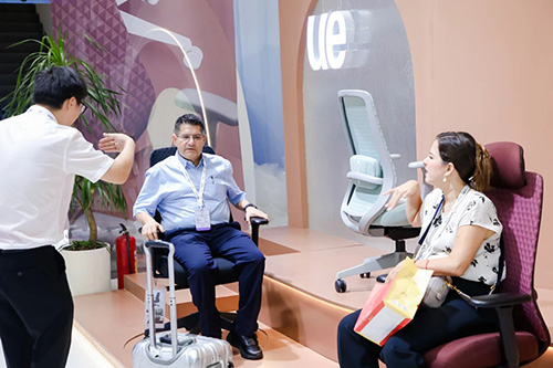 { 办公臻品 } 永艺RC撑腰椅搭载随动骶骨支撑与魔毯腿托,实现精准承托与座背联动;恒林HLC-800动态追腰座椅首创“动态护脊生态”,打造具备自主健康管理能力的智能座舱;富凯FK014椅采用流线外形与线控底盘,适配高端会议场景;精一Rainbow季亦系列以轻量化结合再生材料与模块化设计,呼应环保并契合Z世代对简约、可持续办公的需求;地球森林MARATTI展出VESBY第三代人体工学椅,以科学坐姿重新定义现代办公。