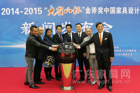 3月16日,2014-2015“大岭山杯”金斧奖中国家具设计大赛在第31届名家具展上正式启动。作为中国家具行业主流设计赛事和设计奖,本届大奖赛的主题为“结构与细节”。 2014-2015“大岭山杯”金斧奖中国家具设计大赛由中国家具协会主办,中国家具协会设计工作委员会及大岭山家具协会承办。中国家具协会理事长朱长岭、副理事长陈宝光,广东省家具协会会长王克,大岭山镇党委委员蔡培光,大岭山家具协会会长陈民、黄进宝等,各大专院校代表以及国内主要家具设计机构、家具企业代表100多人出席了大赛启动新闻发布会。