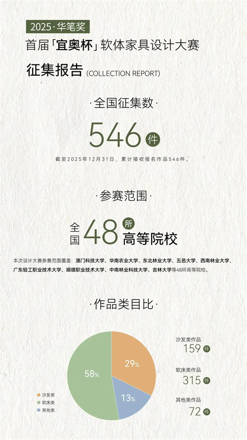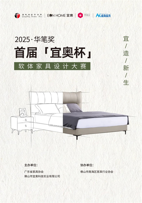 近日,由广东省家具协会与宜奥集团联合主办的华笔奖·首届"宜奥杯"软体家具设计大赛作品征集阶段已顺利结束。自2025年5月启动以来,大赛受到全国各大高校、设计机构及社会各界的广泛关注与热烈响应。