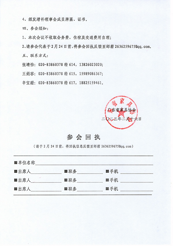 2、请参会代表于2月24日前,将参会回执反馈至邮箱2636259675@qq.com。
