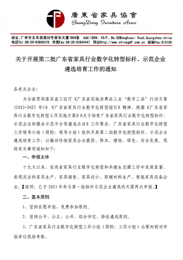 关于开展第二批广东省家具行业数字化转型标杆、示范企业遴选培育工作的通知