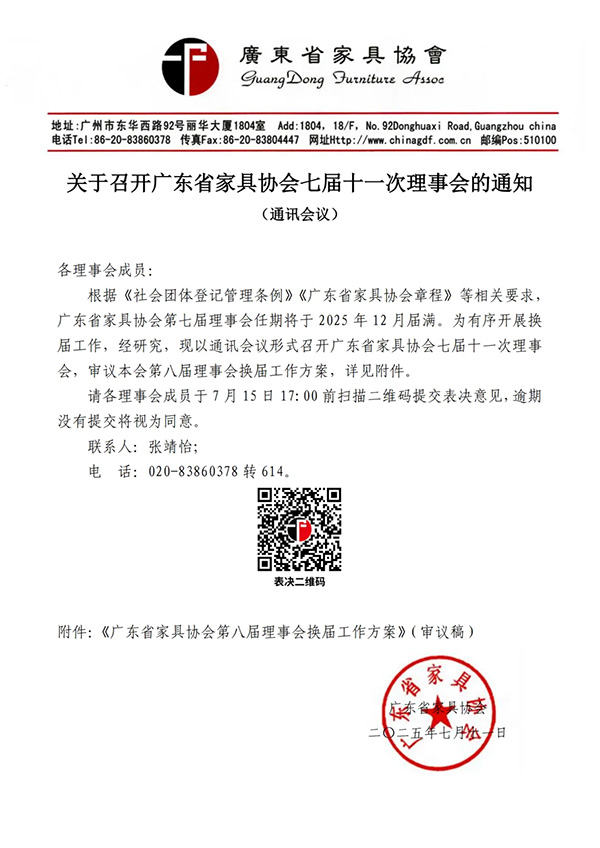 关于召开广东省家具协会七届十一次理事会的通知(通讯会议)