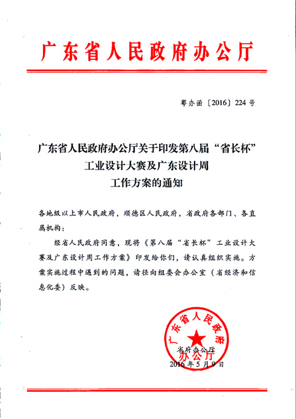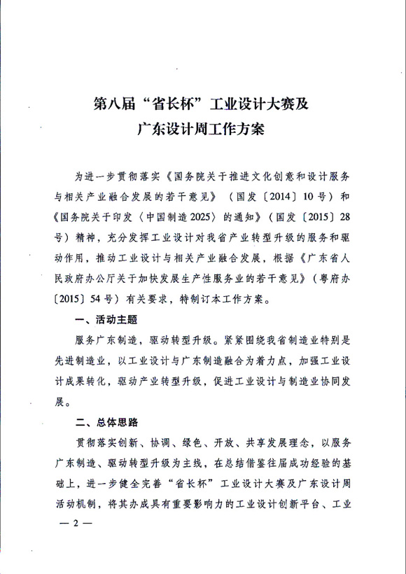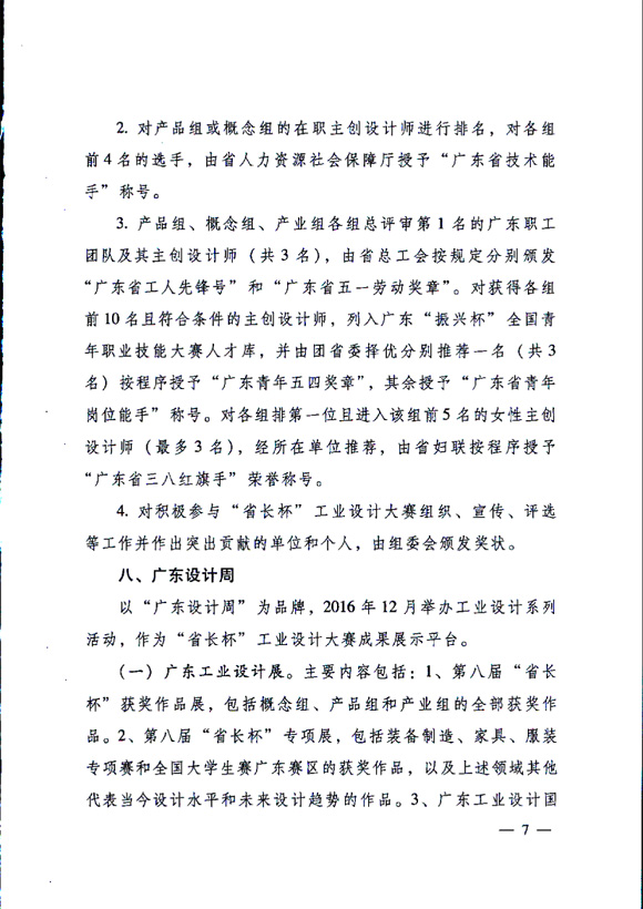 广东省人民政府办公厅关于印发第八届“省长杯”工业设计大赛及广东设计周工作方案的通知