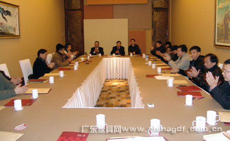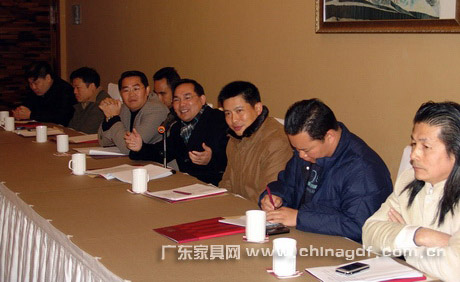 2月1日,在新春佳节即将来临之际,广东省家具协会在番禺召开了会长工作会议。 会议分析了2008年行业发展动向;讨论了2008年广东省家具协会重点工作,计划成立的专业委员会; 通报了《欠交会费名单》;并对《调整部分理事、常务理事、副会长的议案》、《增补部分理事、常务理 事、副会长名单》、《创名牌产品先进单位名单》、《创著名商标先进单位名单》等有关文件进行了充分 而民主的商讨。 省家协王冶会长出席会议并作了讲话,王克常务副会长兼秘书长、李礼副会长、张承志副秘书长以及 副会长单位共三十多人参加了会议,会议由王克秘书长主持。