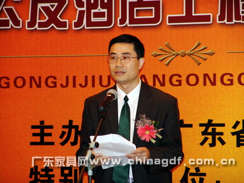 省家具协会常务副会长兼秘书长王克先生在致辞中表示:近年来,我省办公及酒店工程家具产业继续保 持了较快、稳步的增长态势,约有1000家办公及酒店工程家具企业,占全行业6000家的六分之一。据不完全 估计,2007年办公及酒店工程家具销售额约240亿人民币,占我省家具行业销售总值1600亿元人民币的15%, 比上年的185亿元增长30%。