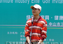 5月13日,第三届广东省家具行业三乡古典家具杯·精英高尔夫球邀请赛在中山温泉高尔夫 球会举行。中国家具协会理事长贾清文、副理事长陈宝光、办公室主任姜夫恒,广东省家具协 会常务副会长兼秘书长王克、副会长李礼等行业协会负责人以及中山市体育局黄有泉局长、曹 周桥副局长、马伯兴副局长、中山市三乡镇政府陆洁强副镇长等领导出席了本次活动。省家协 常务副会长兼秘书长王克和中山三乡镇副镇长陆洁强分别在开球礼上致辞。