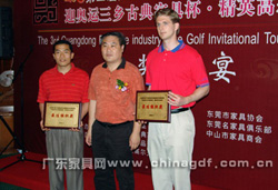 比赛过程中,球员们不但切磋了球技,还增进了友谊,促进了合作。球赛在当天下午5时结 束,颁奖典礼随即在中山温泉高尔夫球会会所举行。深圳市家具行业协会、东莞名家具俱乐部、 广东省家具协会分别获得团体总杆冠、亚、季军,三乡古典家具协会的肖颂乐则打出了球赛举办以来的最好成绩,以77杆的好成绩夺得个人总杆第一名。活动还向中山市三乡古典家具行业 协会颁发了热心公益奖,向深圳市家具行业协会、中山市家具商会颁发了最佳组织奖。同时, 组委会在晚宴上宣布下届球赛拟于今年11月在东莞举行,并进行了交接旗仪式。