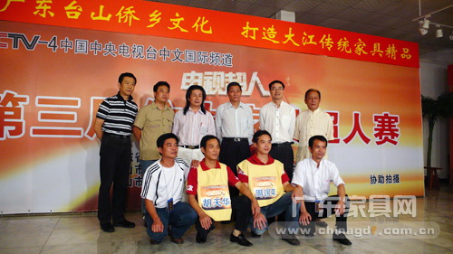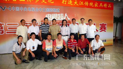 10月10-11日,来自我省中山、顺德、新会、大江等地六家代表性企业,12名企业员工,经过两天、两个回合、两次复活赛、决赛等激烈的比赛,在11日下午六点CCTV 中央电视台“第三届仿古家具电视超人赛”终于有了结果,冠、亚、季军名花有主,晚上在碧桂园凤凰酒店一楼凤凰国际会议中心,举行了盛大的庆功宴会,标志着本次比赛取得圆满结束。