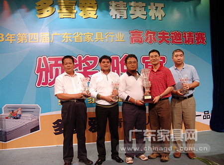 省家具协会常务副会长兼秘书长王克在开球仪式上表示:为了营造家具行业组织之间、会员企业之间“团结协作、共同进步”的良好氛围,展示广东省家具行业精英在高尔夫球运动的竞技水平,推动广东省家具企业提高重视体育运动、增强体质的意识,积极倡导“绿色·家具·健康·和谐”精神,由各家具行业协会/商会主办“广东省家具行业精英高尔夫球邀请赛”,是今年行业的又一体育盛事,第一届团体总杆冠军队是广东省家具协会(253杆/3人),第二届团体总杆冠军队是东莞名家具俱乐部(256杆/3人)第三届团体总杆冠军队是深圳市家具行业协会(252杆/3人)。可以说,通过举行邀请行业精英中的高尔夫球爱好者,参加正规的比赛,基本达到四个主要目的:1、提升家具行业在耐用消费品市场的地位; 2、提升家具行业参与高尚运动项目的积极性;3、提升家具行业在全国高尔夫球运动的水平;4、提升独家冠名企业品牌在行业内外的知名度。