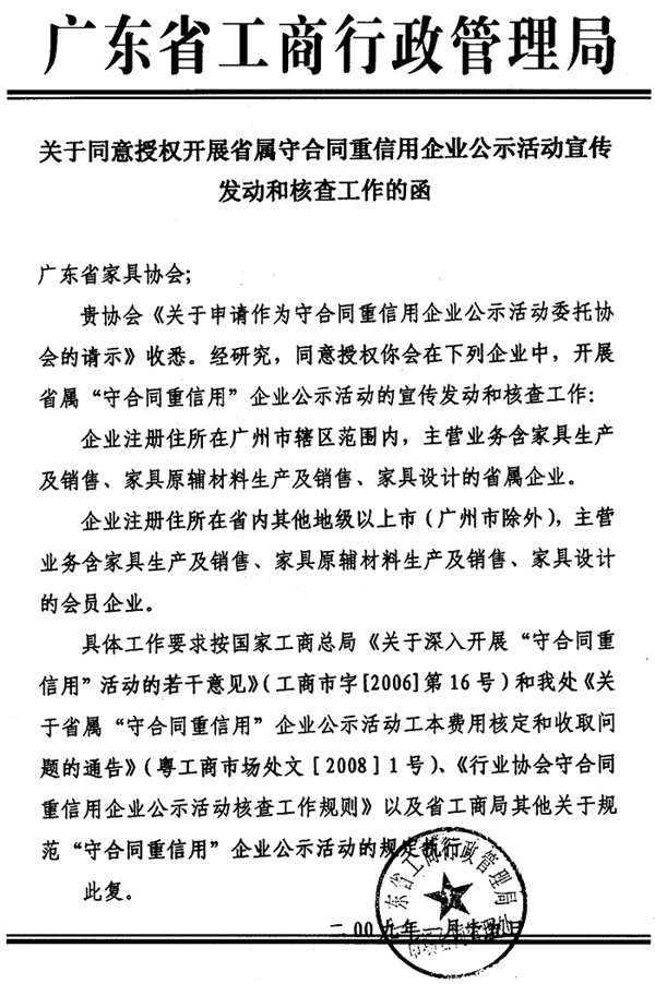 省工商局同意授权省家协作为“守合同重信用”企业公示活动委托协会