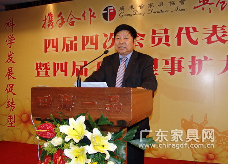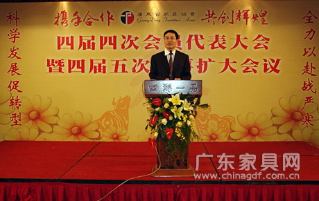 中国家具协会贾清文理事长在《全国家具行业经济运行情况的报告》中指出:中国家具行业在过去的一年中,克服了种种困难,终于取得了全行业以及出口均增长20%的好成绩。展望未来,还是充满机遇与挑战。对此,我们要树立信心,实践科学发展观,为实现我国家具又快又好地发展共同努力!在谈到广东省家具协会时他认为:广东家协是我国优秀的地方协会之一,过去一年的工作是富有创新、卓有成效的,非常值得赞赏。