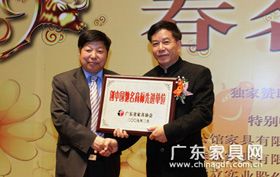 省家具协会王冶会长、中国家具协会理事长贾清文先生、省政府职能部门代表、顺德罗浮宫家居集团总经理陈桂芳女士先后致辞。大会向增补新当选的“副会长、常务理事、理事”颁发证书,向88个会员单位颁发“2008年度优秀会员”证书,向9个会员单位颁发“创名牌产品先进单位”证书,向24个会员单位颁发“创驰名商标、著名商标先进单位”证书,可喜可贺!
