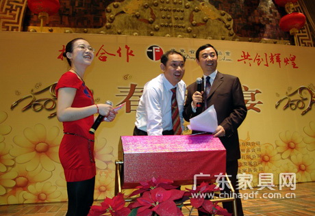 会议坚信:只要全行业上下“全力以赴战严寒,科学发展促转型!”,迎接我们的将是又一个家具行业美丽的春天! 会议结束后举行了春茗晚宴。来自全省各地的会员企业,省经贸委、省外经贸厅、省工商局、省新闻出版局、省质检中心、省二轻集团、中国对外贸易展览公司等有关部门负责人,以及香港、台湾、广州、东莞、中山、佛山、顺德、乐从、大涌、三乡、大江、新会等地家具协会(商会)的会长、秘书长,全省的新闻媒体共计450多人出席。晚宴由张承志副秘书长,邹琦小姐主持。