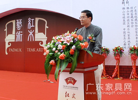 首先我谨代表广东省家具协会祝贺“第五届中国(乐从)红木家具艺术博览会”顺利开幕!