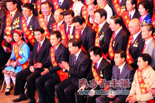 表彰大会结束后,省领导与劳模代表合影(前排右三为周淑毅)。 南都记者 李向新 摄