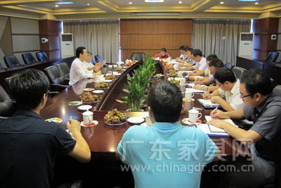 8月3日,广东省家具协会会长王克、副会长李礼带领广东省家具产业转型升级调研组一行前往顺德区龙江镇,与中共佛山市顺德区龙江镇委员会副书记张新杰、党委委员谭逢显、龙江镇经促局常务副局长黄奋南、副局长刘振峰以及亚洲国际家具材料交易中心有限公司总经理钱江,就深入合作、共同推动广东家具产业转型升级事宜进行了深入交流和探讨。