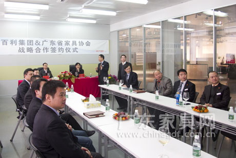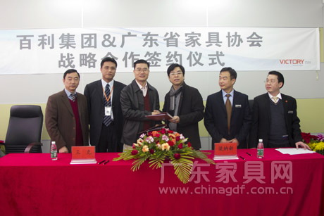 2012新春报喜,广东省家具协会系列设计大赛再添新成员。 2月1日,广东省家具协会-百利集团战略合作签约仪式在广州市百利文仪实业有限公司举行。省家具协会会长王克,省家具协会副会长、广州市百利文仪实业有限公司董事长梁纳新共同签署合作协议书,双方将共同举办“百利杯•活态空间创意设计大赛”。省家具协会秘书长张承志,百利集团有关部门领导出席签约仪式。