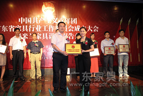 会上,黄跃珍宣读《关于同意成立共青团广东省家具行业工作委员会的批复》,廖焯荣向广东省家具行业团工委第一届书记张靖怡颁发铜牌。广东省家具行业团工委第一届委员单位由东莞光润家具股份有限公司团总支等8家会员单位的团组织组成。
