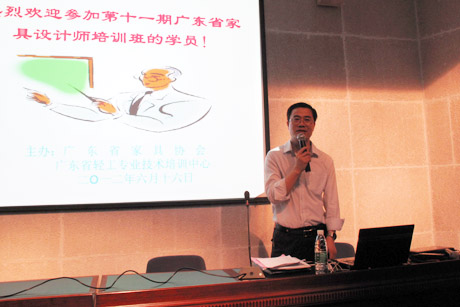 为期两天的培训课程紧凑而充实,省家具协会会长王克对专业考试及职称申报工作进行了深入而细致的辅导。专业课更聘请了三位学者、一位国外设计师担任授课老师,分别是顺德职业技术学院艺术设计学院院长彭亮教授、刘晓红教授,广州美术学院美术教育学院展示设计教研室主任郑念军副教授以及马来西亚设计师腓力圃•叶先生,在多年教学、实践经验的基础上总结归纳家具设计发展趋势,甚至设计师成长发展历程,从不同的角度阐述了各自的观点。丰富的内容、精彩的案例、生动的讲解,对引导设计师树立正确的设计观、把握个人定位、紧跟设计潮流脉搏、提升综合配套设计水平起到了画龙点睛的作用,深受学员们的欢迎和好评。学员们纷纷表示虽然两天的培训时间很短,但受益匪浅,收获颇丰。