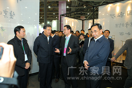 省委书记汪洋参观广东家协承办的广东工业设计周中国客厅展 2012-12-6 来源:广东家具网