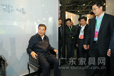 在广东省家具协会会长王克、秘书长张承志的陪同下,汪洋书记、朱小丹省长参观了展区并饶有兴趣地试坐了其中的两款椅子,亲自体验家具的创新设计。王克会长向汪洋书记介绍了家具行业的情况,中国家具出口占世界的40%,广东家具出口占中国的40%,但其中大部分是OEM(代工生产),为此,广东省家具协会坚持以设计为龙头,引导行业、企业走设计创新的发展道路,运用新材料、新技术、新工艺开发家具产品,而近年推出的新中式家具就是融汇古今、创新设计,未来引领国际潮流的产品。 汪洋书记对此表示赞赏并强调,对于新中式家具,西方人看很“中国”,中国人看很“西方”,年轻人看很现代,老年人看很古典,设计可以有无限创意,抓住设计,才能抓住市场。 省委常委、秘书长林木声,省政府副秘书长林英,省经信委党组书记赖天生等一同参观。