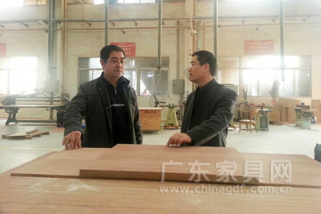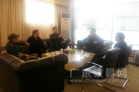 1月29日,广东省家具协会会长王克、秘书长张承志、广州美术学院郑念军教授一行来到广州市至盛冠美家具有限公司位于佛山三水的工厂进行参观,与冠美董事长章爱军深入探讨工厂的生产、经营情况。