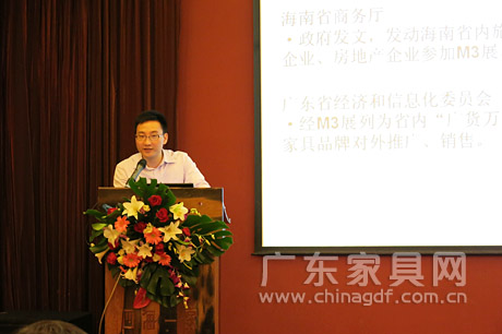 广州世展米兰展览有限公司助理总经理温志斌针对海南M3展作了详细的情况介绍。希望各企业能抓住机遇,早日在海南这个旅游市场中占领重要的份额。 据了解,海南国际旅游岛建设项目前景广阔,正在全面推进的是先行试验区,将建设28家五星级酒店群,总投资1500亿元。在建工程包括:凤凰岛、三亚美丽之冠、太阳湾柏锐酒店(7星)、凯宾斯基酒店(5星)、海口火山主体公园主园区等,这些项目的建设对于酒店家具的需要是前所未有。习近平总书记今年在海南考察时也强调:加快国际旅游岛建设,谱写美丽中国海南篇。中央的政策支持以及巨大的市场优势,使海南成为企业开拓市场的重要阵地。 作为海南当前唯一专业的酒店业展览会,海南M3展以酒店家具、酒店用品及培训服务展览会为主题,将于2013年5月21日至23日为海南以及中国大陆和东南亚周边国家构建一个酒店行业交流平台,为海内外买家提供一站式采购平台。