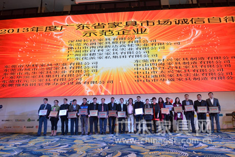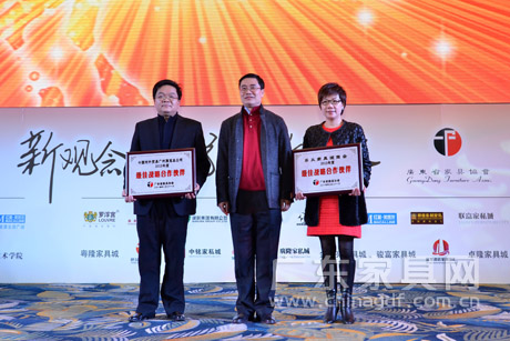 为推动我省家具市场诚信体系建设,省家具协会在晚会上对广东罗浮宫国际家具博览中心有限公司等8家单位授予“广东省家具市场诚信自律示范市场”称号;对深圳长江家具有限公司等36家单位授予“广东省家具市场诚信自律示范企业”称号;对佛山市天一美佳家具有限公司(罗浮宫)等69家单位授予“广东省家具市场诚信自律示范商户”称号,与会领导分别为获奖单位颁奖。同时,为感谢对协会工作的支持,广东省家具协会分别向中国对外贸易广州展览总公司、乐从家具城商会颁发了“最佳战略合作伙伴”牌匾;向国家家具产品质量监督检验中心(广东)等22家单位颁发“最佳合作伙伴”牌匾。