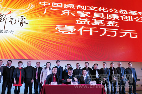 由中国红十字基金会-中国原创文化公益基金、贵州茅台酒厂(集团)白金酒有限责任公司、广东省家具协会共同合作的中国原创文化公益基金-广东家具原创公益基金同时成立。三方将本着资源共享、优势互补、合作共赢的原则,整合优质资源,充分发挥智力优势、创意优势和精湛的工艺制作优势,形成国内一流的创意设计平台,旨在提升家具制造业的艺术创意能力。 晚会上,与会嘉宾畅叙友谊,共话发展,迎接广东家具行业的春天,会场内外洋溢着团结奋进的气氛。