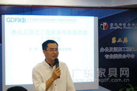 广东省家具协会会长、委员会主任王克在讲话中指出,当前行业进入融合发展的时代,服务要前移。本次办公及酒店工程家具专业委员会年会为上下游产业创造了很好的交流合作条件。王克表示,未来海南新建或改建300多家主题酒店、个性化酒店、精品酒店以及海南旅游岛的建设为办公和酒店家具企业提供了一个非常好的机遇。现在国家严格控制楼堂馆所的建设,对企业开拓市场造成一定的冲击。因此,办公及酒店家具企业应该放眼海南,重视设计创新,主动调整战略方向与市场定位,在发展中成为胜者、前行者。同时,企业要重视环保,这是企业的社会责任,协会将配合政府提出的产业转型升级政策,大力推动水性涂料、静电粉末喷涂技术和环保材料的应用,整合产业链,推动家具行业更健康地发展。 会上,顺德职业技术学院彭亮教授、广东省环保学校罗超老师分别作了国际酒店家具设计流行趋势、家具制造行业VOCs控制政策与对策的讲座,受到大家的关注和好评。