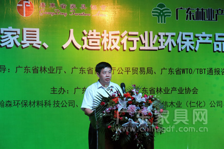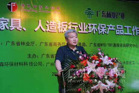 6月12日,广东省家具协会、广东省林业产业协会在广州共同召开广东省家具、人造板行业环保产品工作会议。上下游产业紧密携手,共同推动两大行业清洁生产,从环保方面进一步促进产业转型升级。 本次会议得到省林业厅、省商务厅公平贸易局、省WTO/TBT通报咨询研究中心的指导。广东省林业厅副厅长杨胜强、广东省商务厅公平贸易局救济处处长张萍、广东省经济和信息化委员会产业发展处调研员区毅勇、广东省家具协会会长王克、广东省林业产业协会秘书长邹榜先、广东省WTO/TBT通报咨询研究中心部长刘亮等出席。