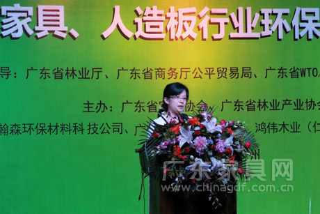 王克表示:“2008年中国家具院士行强调:中国家具行业是环境友好型的常青产业。我们应把‘环境友好’这四个字作为我省家具行业转型升级阶段的重要工作来抓,加强与林业产业、涂料产业的交流合作,抓出实效、抓出成果,促进家具行业继续成为健康、稳步发展的常青产业。” 会上,国家家具产品质量监督检验中心副主任杨建华、SGS通标标准技术服务公司化学技术专家黄创峰博士分别介绍了我国、我省有关家具、人造板行业环保规范和要求;对美国复合木制品技术性贸易措施进行解读,分析该措施更为严格的甲醛排放标准对我省家具、复合木制品出口美国,以及家具、人造板上下游生产企业产生的重要影响。来自广东家具出口骨干企业江门健威家具、深圳长江家具以及人造板骨干企业广东瀚森环保材料科技公司、鸿伟木业(仁化)公司、木佳化工(上海)公司、广州华坊洲木业的有关负责人围绕应用人造板质量标准要求、人造板甲醛标准监控与质量承诺进行了详细的介绍。
