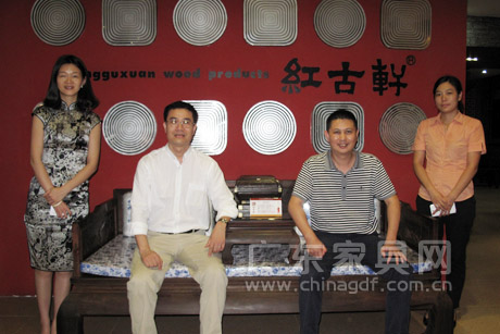 2014年度的广东省著名商标申请受理工作已于7月15日结束,根据《广东省著名商标认定和管理规定》(粤府令第124号)的规定及评审认定程序,随后开展行业部门评价工作。 为客观、公正地了解家具行业各申报企业的信誉、商标知名程度、被侵权情况、经营发展状况等相关情况,8月27日,广东省家具协会会长王克一行前往中山皇家状元坊红木家具公司和中山红古轩家具公司调研。 在状元坊参观了展厅后,王克会长与蒋道松董事长就企业的生产经营、品牌建设等情况进行探讨。状元坊红木家具2008年成立至今,高速发展,重视产品开发和品牌建设,取得了骄人的成绩。尤其是运用儒家的思想、道家的文化,为企业的文化发展奠定了基础,值得红木家具企业借鉴。 在红古轩,王克会长与吴赤宇总经理、杨晶总监就设计创新、品牌建设、红木市场情况进行交流。王会长对红古轩在推动新中式家具发展和价格诚信方面作出的贡献表示赞赏。该公司十余年来一直致力于深色名贵硬木家具产品的研发和生产,是大涌产业集群技术升级的重点企业。