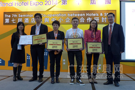 由广东省家具协会、亚洲酒店业联盟、海岸国际展览有限公司主办的2014年度“金牌酒店家具供应商”评选活动圆满结束。11月26日,颁奖典礼在澳门第十届酒店用品展上举行。广东省家具协会会长王克及海岸展览有限公司总经理游淑德为获奖企业颁发证书和牌匾。