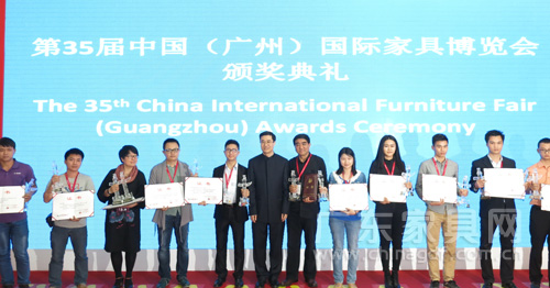 3月20日,经专家评选,第七届广州家居设计展设立的“华笔•全国家居设计大赛”在第35届中国广州国际家具博览会颁奖典礼上正式揭晓。联邦家私《禅修》等作品获得创意设计奖,广州美术学院《嵌》等作品获得新秀奖。 广东省家具协会会长王克为获奖者颁奖。同时,还颁发了组织奖。风格各异的获奖作品,呈现出设计美感提升、工艺材料多元化的特点,体现了设计者的独特匠心和绝妙灵感。