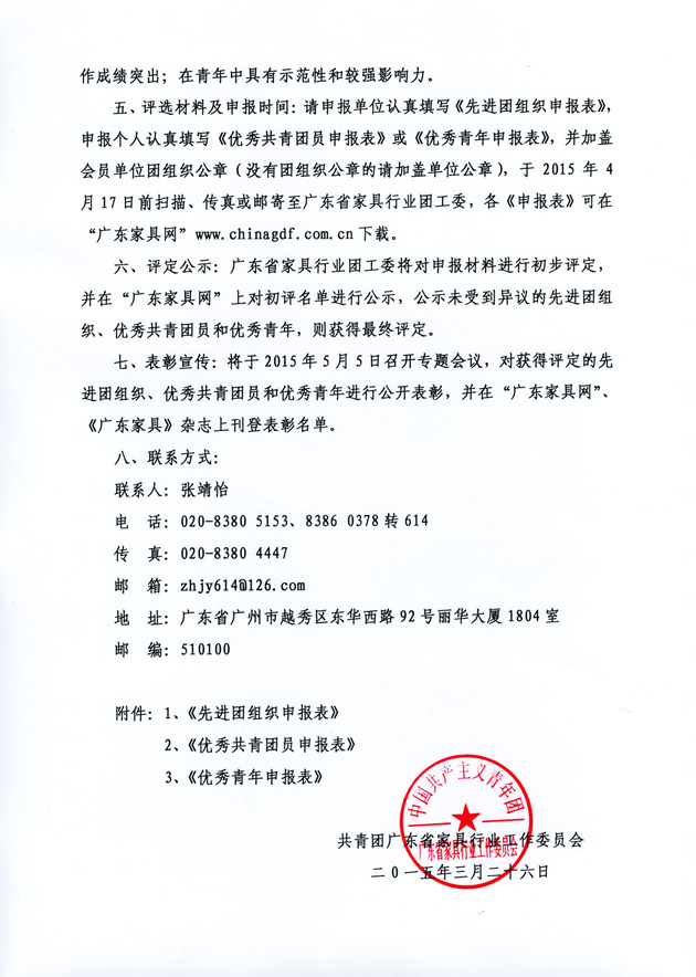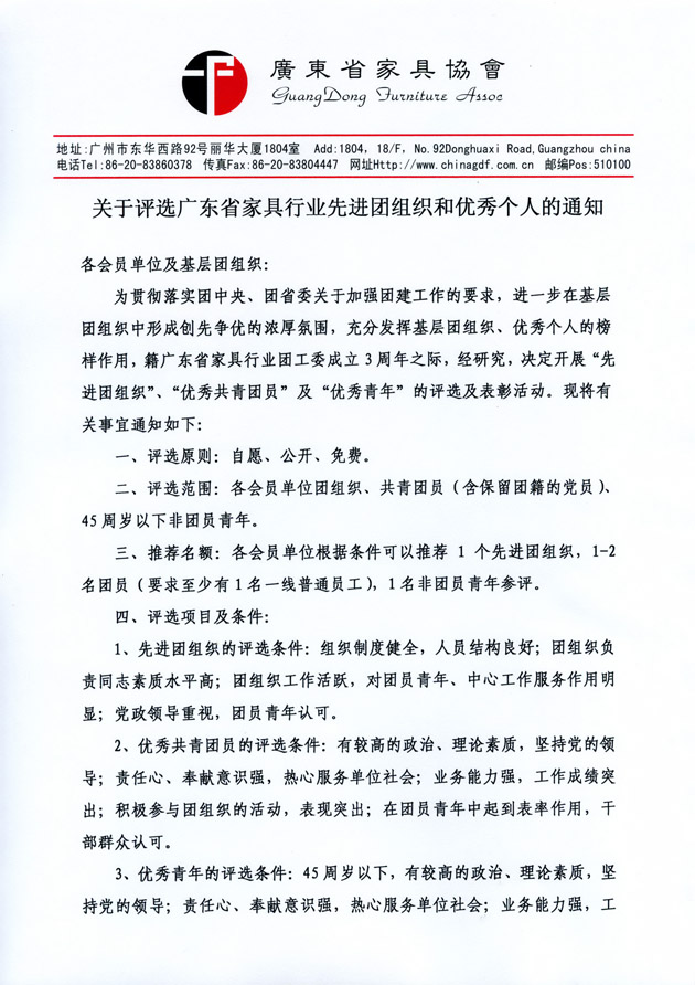 关于评选广东省家具行业先进团组织和优秀个人的通知