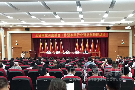 6月16日,全省两化深度融合工作暨家具制造行业现场会在佛山市召开,刘志庚副省长出席会议并讲话。省经济和信息化委主任赖天生总结部署全省两化融合工作,邹生巡视员主持会议。广东省家具协会会长王克、执行会长袁超、江学院、李连柱,及会员单位代表50人参加了会议,出席会议的还包括各地市经济和信息化主管部门及两化融合贯标试点企业、服务机构代表合共250余人。