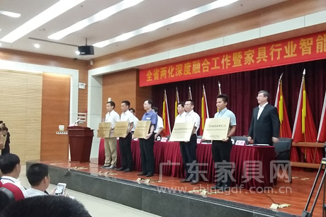 赖天生总结了全省两化融合工作进展情况,并对下一阶段工作作了部署。他强调,全省两化融合工作要主动引领经济发展新常态,要以实施互联网+制造业、大力发展智能制造为主攻方向和重要抓手,大力发展互联网工业设计,推进生产制造智能化,发展智能制造装备,打造供应链新模式,提升管理服务智能化,扩大贯标试点规模,加强行业典型示范,努力推动全省两化深度融合上新台阶。 会议安排了佛山维尚、巨轮股份、环亚科技、电子五所4家企业和单位分别作了两化融合工作经验介绍,并为首批通过国家两化融合贯标评定25家企业授牌,我会执行会长单位佛山维尚家具制造有限公司认定为两化融合贯标试点企业,成为我省传统产业在两化深度融合和智能制造领域的示范单位。会议当天还组织参观了佛山维尚家具、美的集团两家智能制造示范企业。