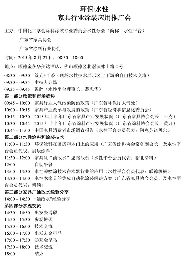 关于召开环保•水性家具行业涂装应用推广会的通知 2015-8-18 来源:广东家具网