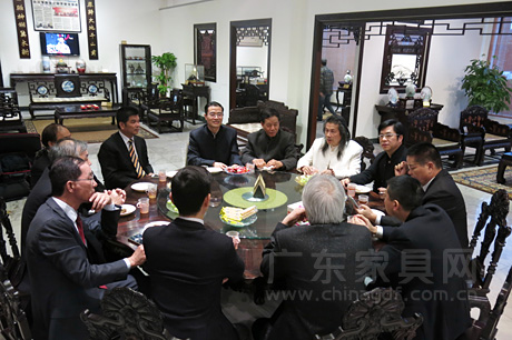 12月5日,广东省家具协会会长王克,执行会长杜泽桦、江学院、伍炳亮、高汉光、萧照兴、陈桂芳、李绍汉、陈伟新、梁纳新、吴赤宇、何广经、袁超、赵崇伟,副会长李礼,副会长兼秘书长张承志齐聚台山伍氏兴隆家具公司,参观交流传统家具文化。