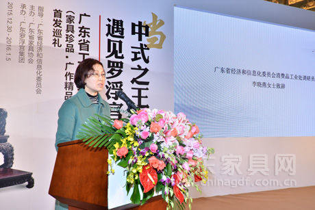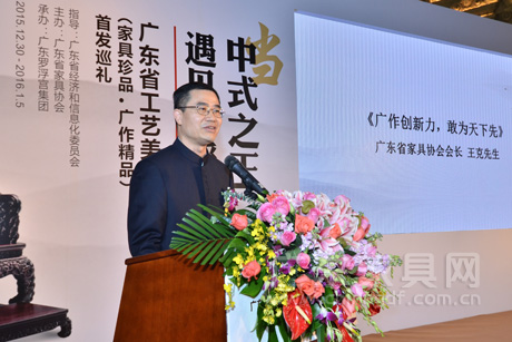 省经济和信息化委员会消费品工业处调研员李晓燕在讲话中表示,作为本次政府职能转移工作的承接主办单位,广东省家具协会经过征求意见和多次讨论,制定完备的方案,做了大量工作,顺利圆满地完成本次认定工作,省经信委对此表示充分肯定和感谢。 “广作的创新发展离不开政府,以及众多企业的关注与支持!”王克表示,未来的中国传统家具产业,将通过艺术创作、技术创新和工艺改良,使广东省工艺美术家具珍品及广作精品,在持续的天工开物中更好掌握工艺和技能,让传统工艺得以传承和发展。通过举办“当代中式之王遇见罗浮宫”的首发巡礼,“大众至爱珍品之王、精品之王”的评选活动,增强了行业关注度及社会对传统家具的认知度。从业态意义上讲,我们对中国传统家具文化传承与创新提出新的认识:“把握题型艺材韵稀,让珍品成镇馆之宝;坚持型艺材韵创新,让精品成效益之源。”